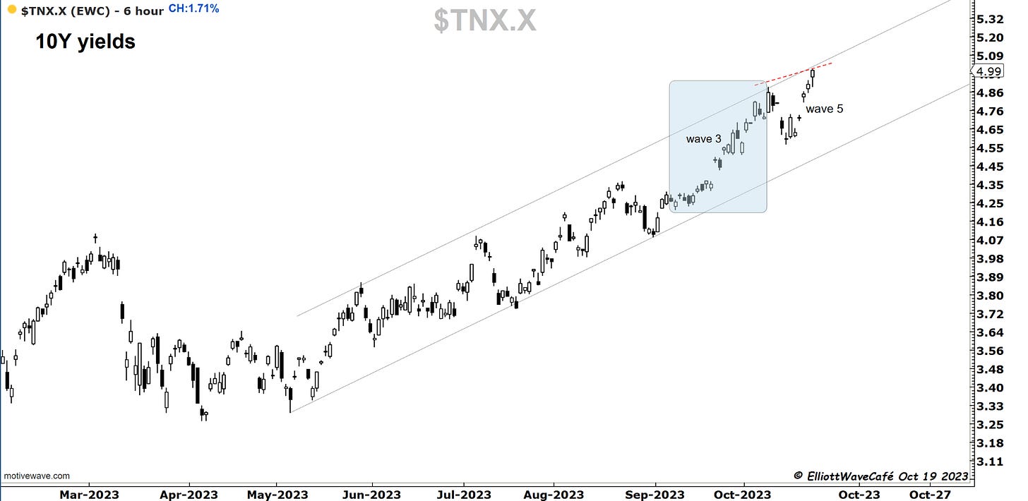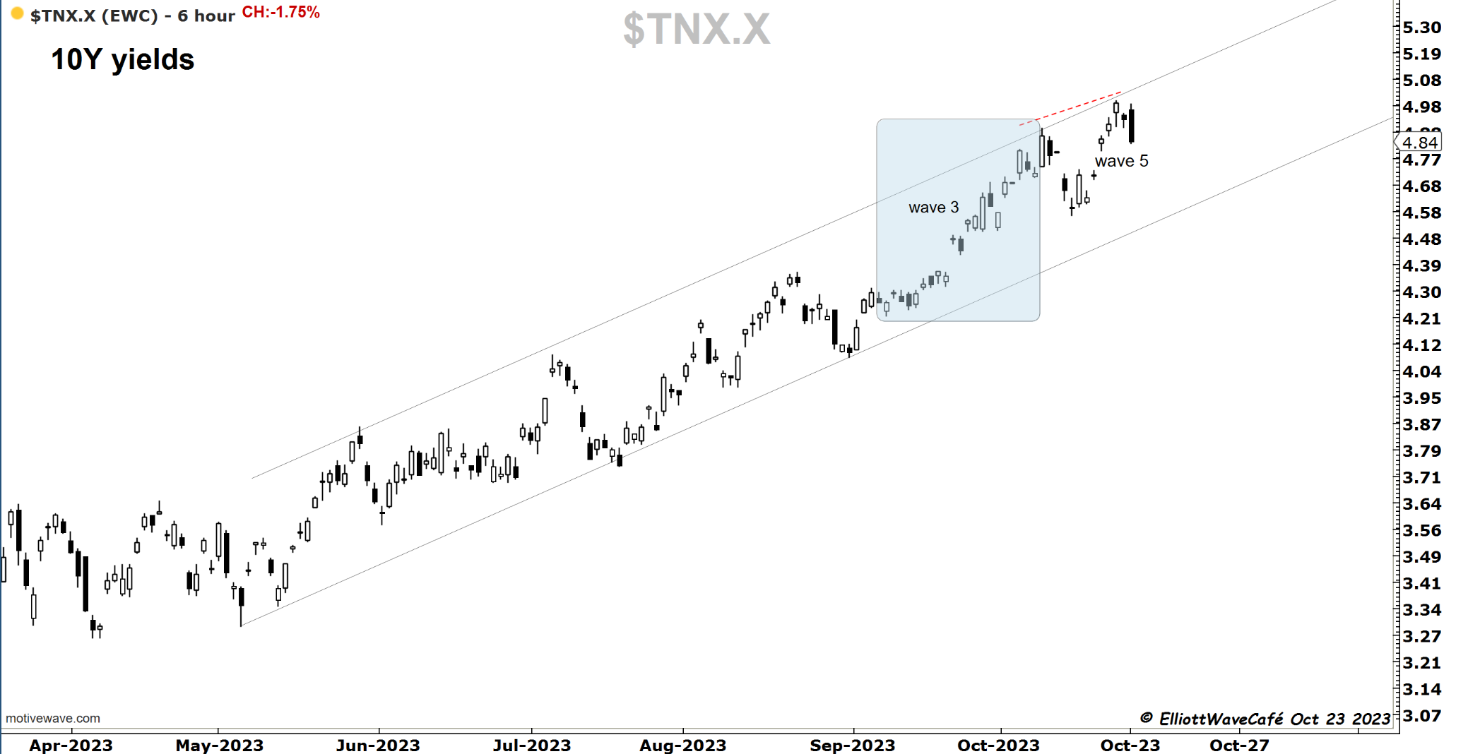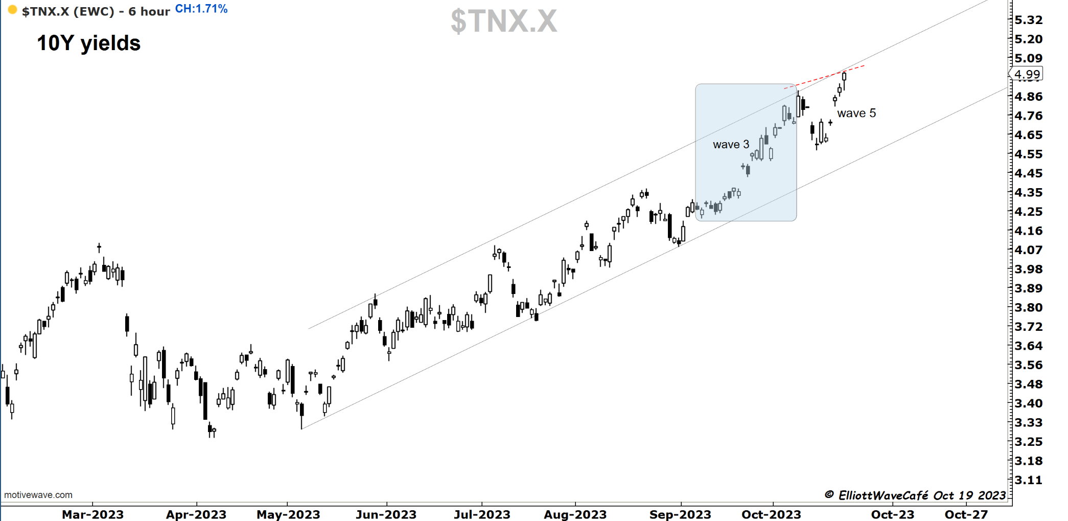 As I said on Thursday’s note, the 10yr yield is reaching top of the channel and looks as a wave 5 move. Today we lost almost 2% that. Of course Bill Ackman tweeted that he covered his long yields position. You can’t make this stuff up.