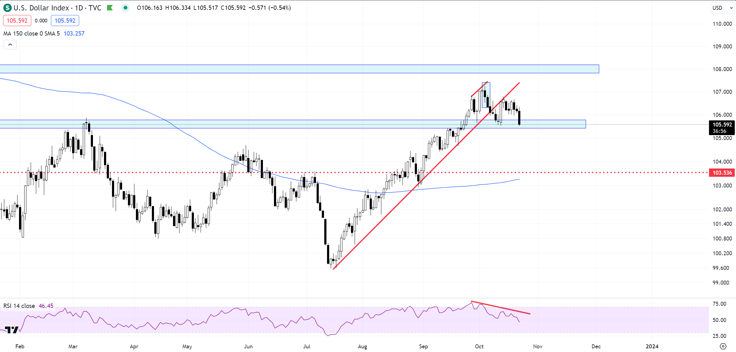 In conclusion, the price traveled lower, but it should be losing momentum. There are some heavy earnings on schedule for this week and with positioning being short we could have a catalyst for further upside squeeze if those come in strong. I would be reducing exposure as a bear into these levels given the mentioned factors. I will discuss below, but the Dollar has also sold of today along with a nice BTC rally. The seasonality should be a positive factor until year end.