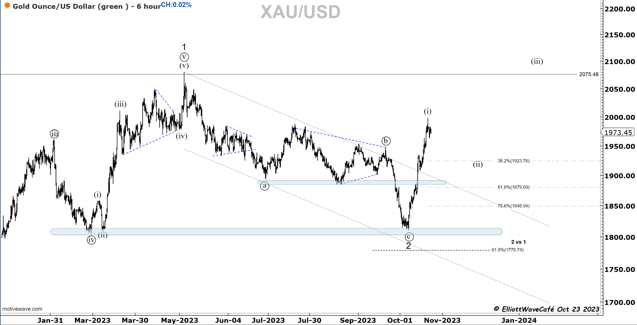 The move in Gold should be now complete and an appropriate fib correction should take place. Let’s start with 38% and see how that appears on the chart for a wave (ii). It looks like it front ran the dollar, so I am quite curious how it reacts if the dollar sells.