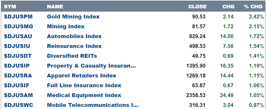 Here are today’s top 10 best performers out of 104 industries.