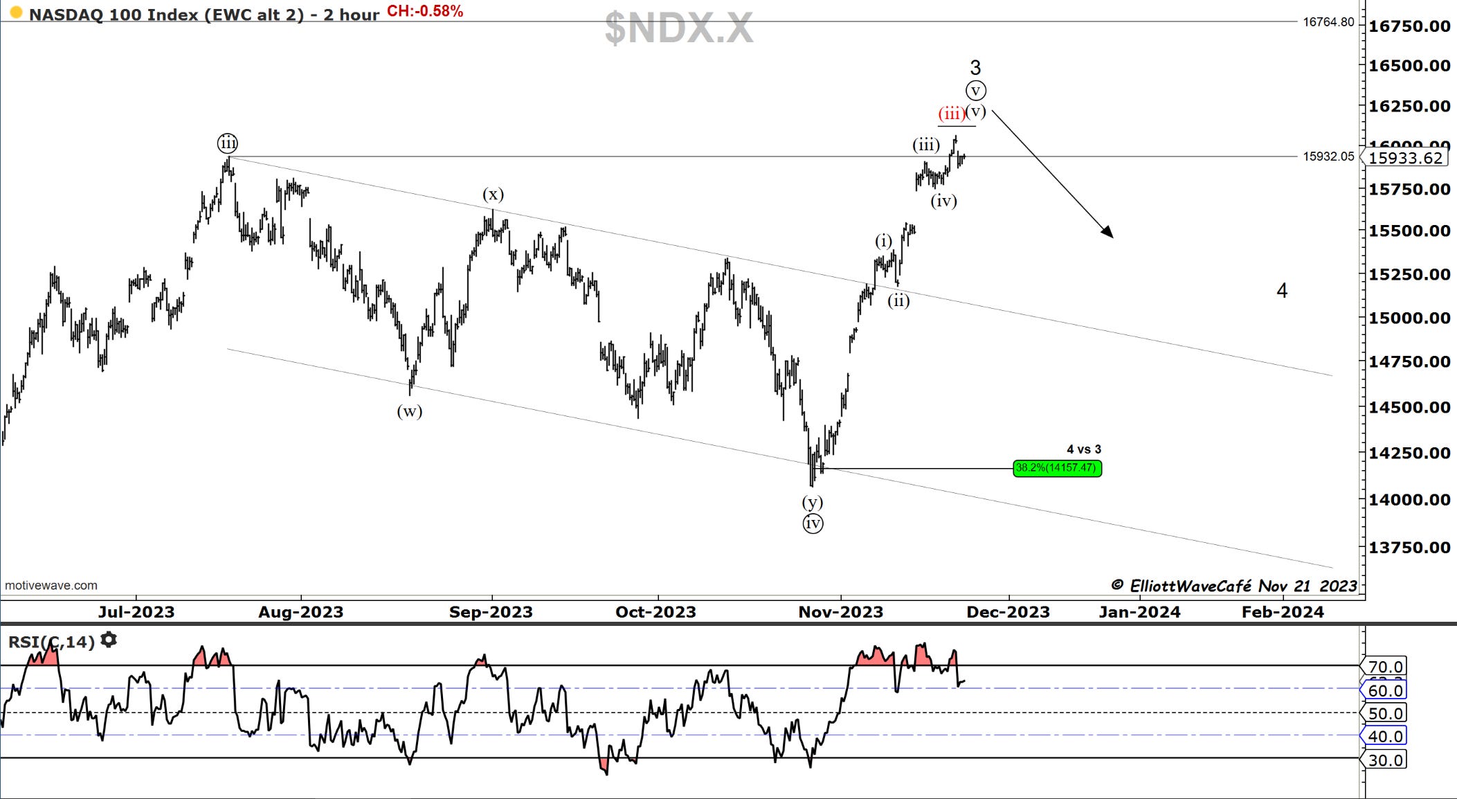 Wave similarities are abundant between main indices. Waiting on a better confirmation signal. A break below a previous 4th is a start.