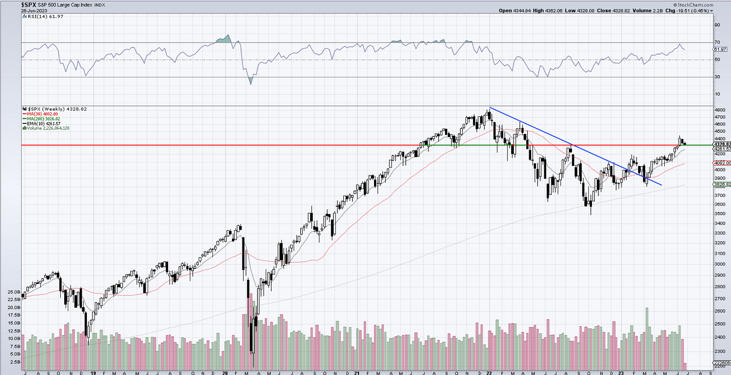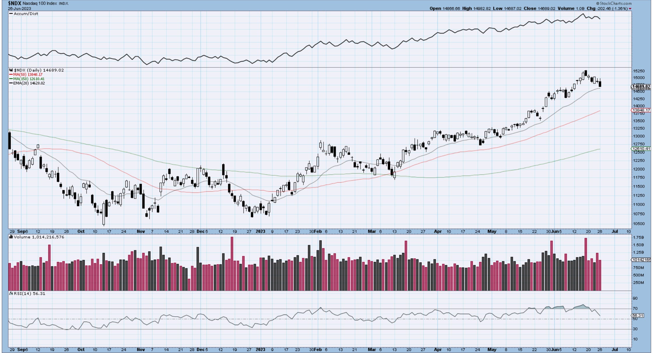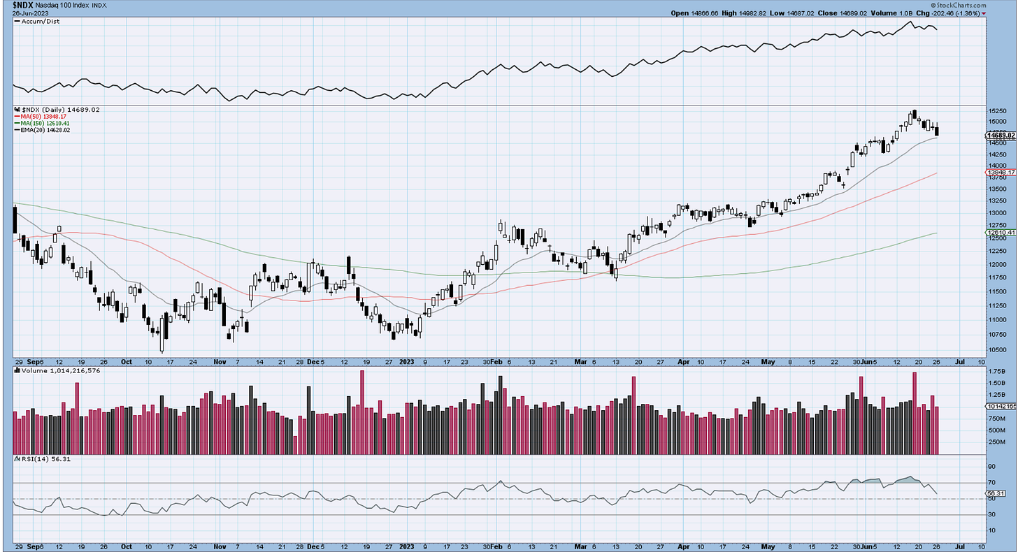 The Index continues to correct the prior strong advance. Wave iv remains valid, although I am a bit worried about its overall size. The trend is up as seen below by a series of HH and HL, and it’s having a close test of a rising 20-day MA. Bids should continue coming in as we approach 4300. With daily RSI approaching 50 levels in uptrends, we’re going to start getting interest from trend-following systems. Weekly is retesting breakout levels and price hugging the rising MA. RSI is in bullish territory. 4200 is the next massive support. The type of levels where “load the boat” expression takes hold.