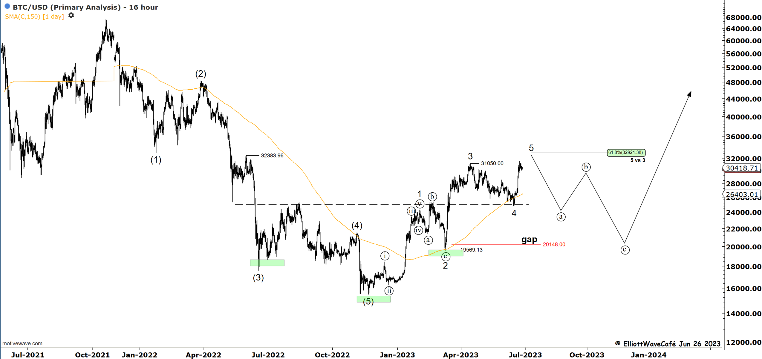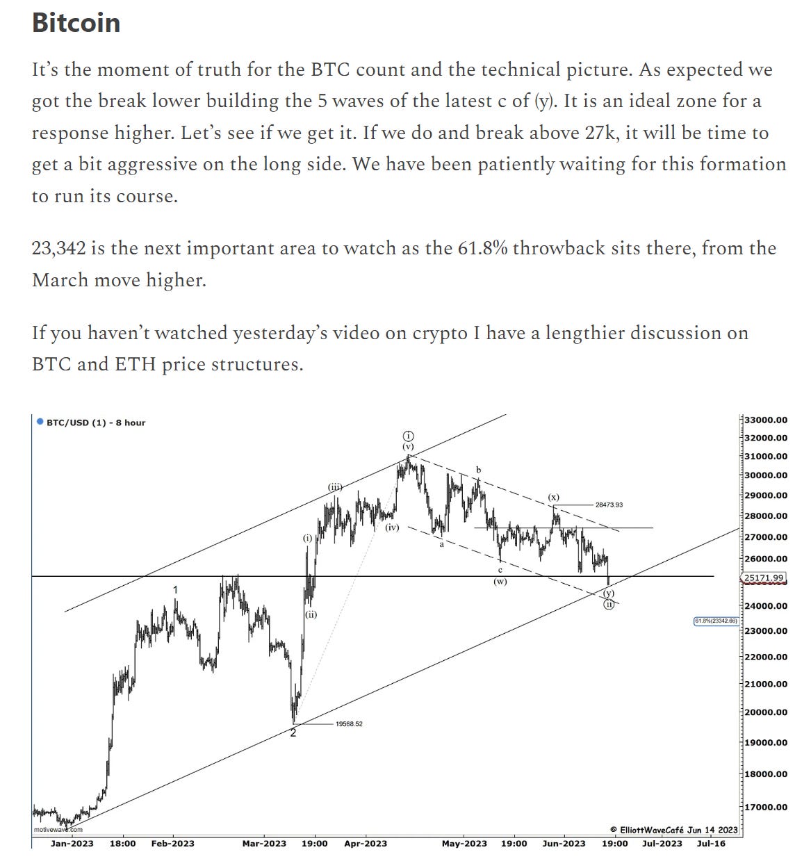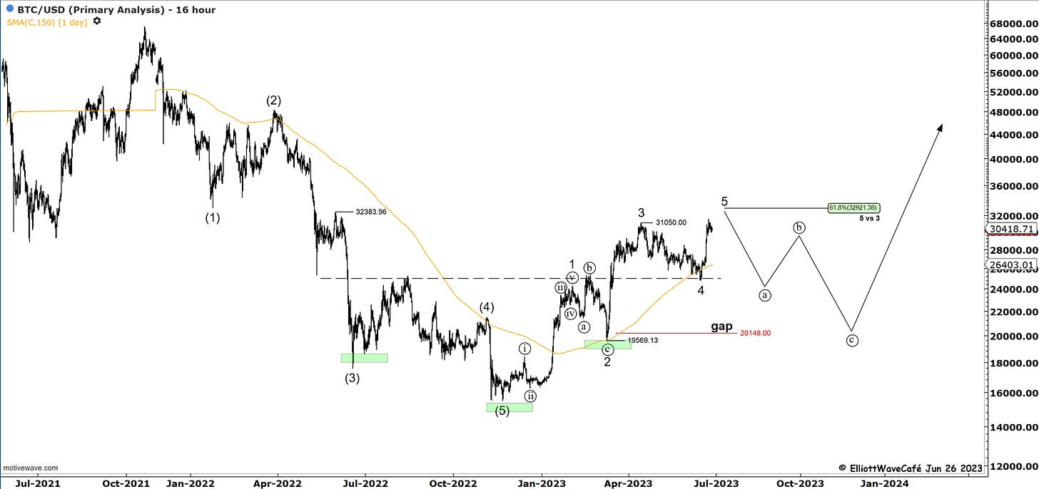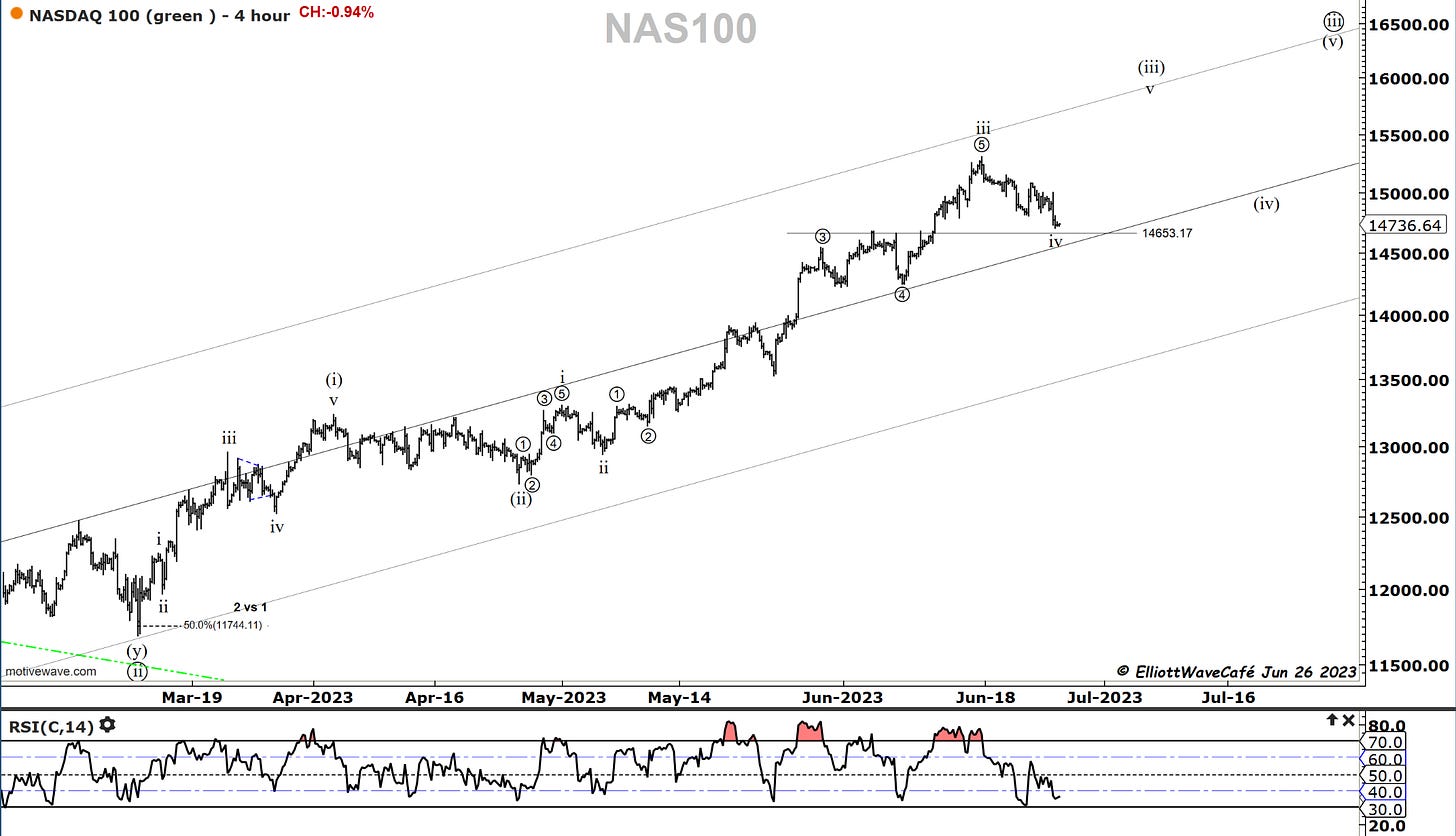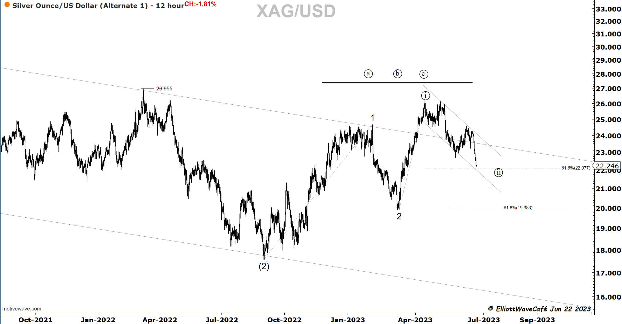 The script was not that hard on these latest few waves as you can see from the June 22nd chart below. We were missing a 4th and 5th which we completed, and we might still be missing another 4th and 5th. We would then expect a bit of a larger wave (ii), but there are no guarantees as to its size or depth. I will be starting to build a position for the next wave (iii) higher once wave (ii) unfolds.