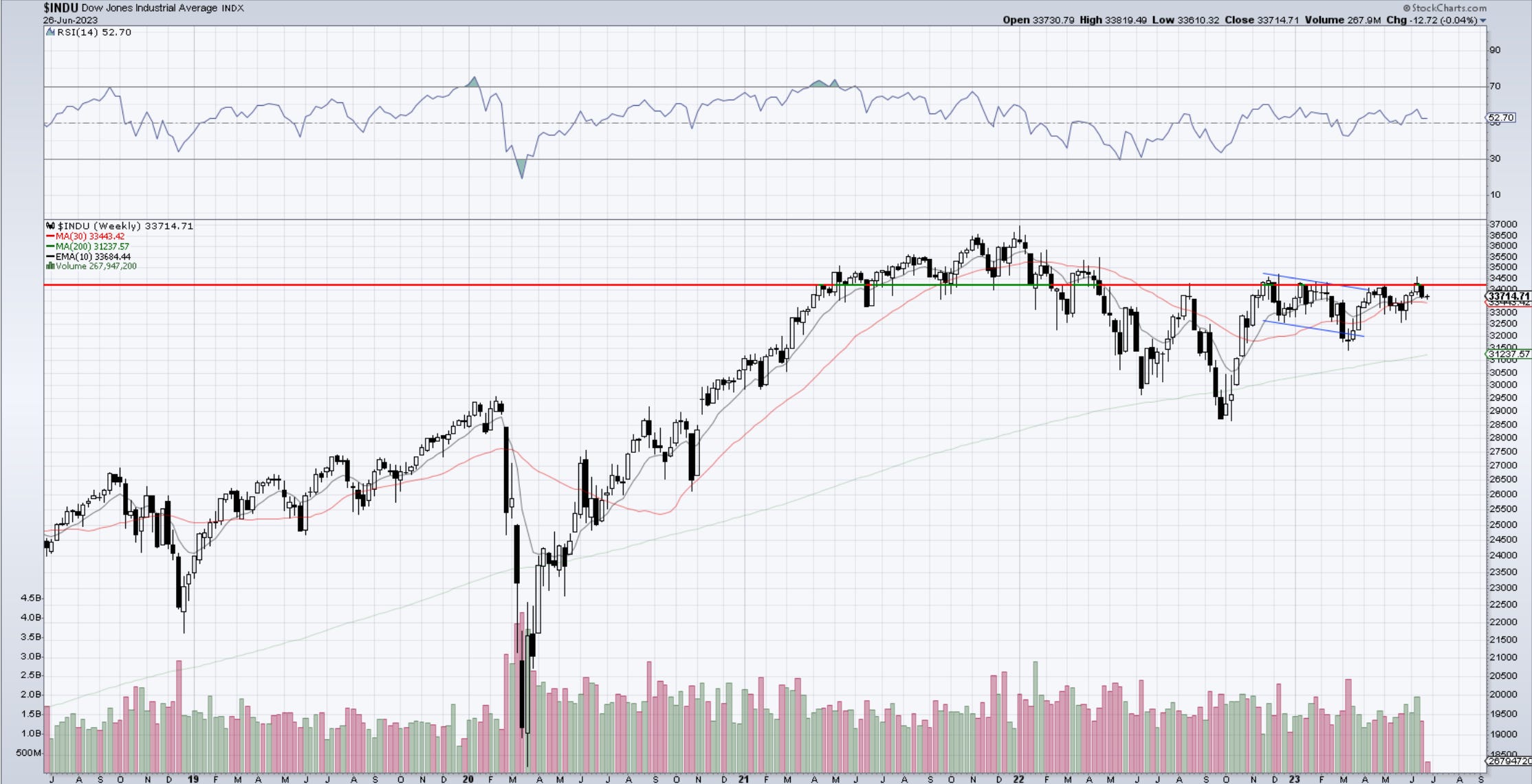 Dow tested those lows twice already and held. I would dare say buyers are showing up and supporting this thing. I want to be amongst them. Once we clear 34,500 for good the move will gain acceleration. I do not want to miss that leg of the move. It’s been a sideways beast and underperformed the spiders, but it’s time is coming.