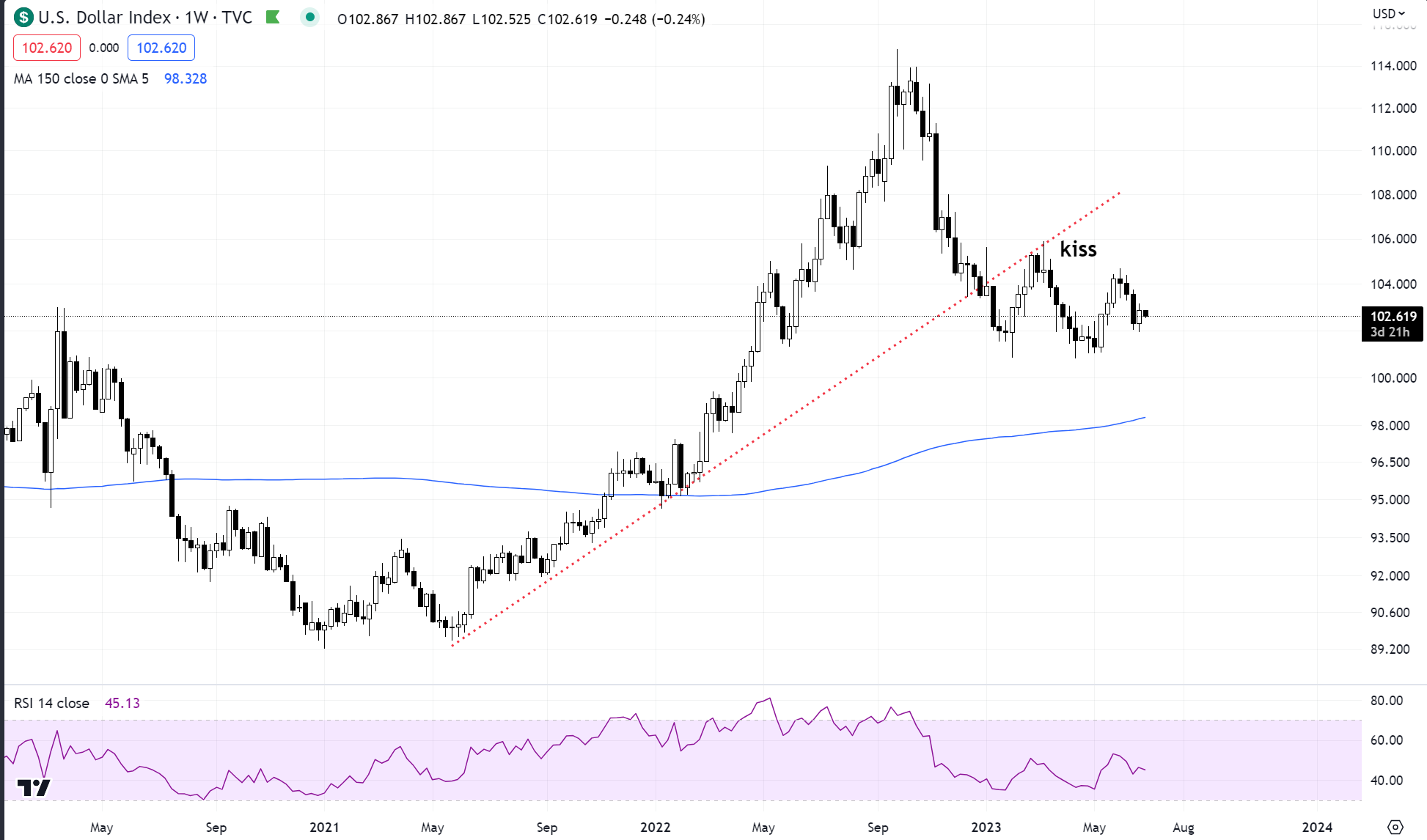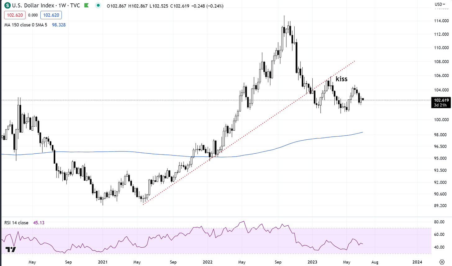 Nothing major to report on the Dollar, other than the fact that it remains weak. It has not staged anything worth noting and the structure it builds suggests more downside. They’re defending 100 by placing bids ahead of that level. It’s held several times, but each bounce is also weaker. This equilibrium will be destabilized in the not-too-distant future.