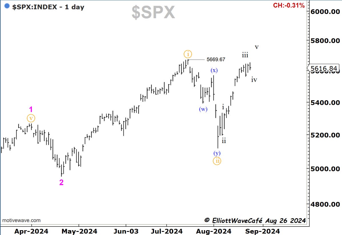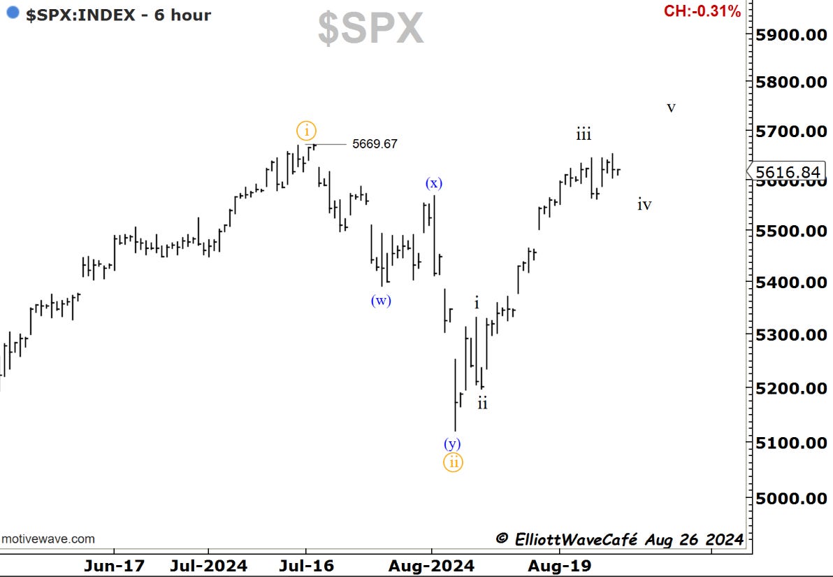 Powell’s rate cut signal Friday came, of course, after the market had already been rallying by about 10% from the August lows. It is no surprise that some latecomers will have to be tested here if they bought the news. It is possibly what creates a fourth wave before another thrust in wave v begins. If we get another three-wave decline after this five-wave thrust, that will create the next long opportunity. But remember that the market does not have to do that. It does not have to do anything that we’re expecting it to do. It’s the most basic and raw reality of markets.