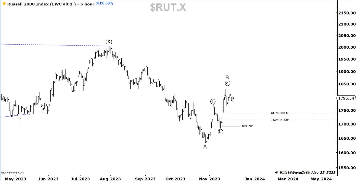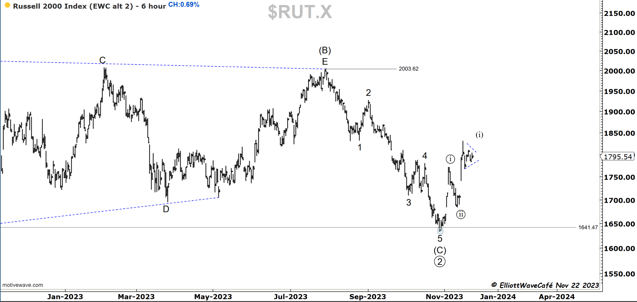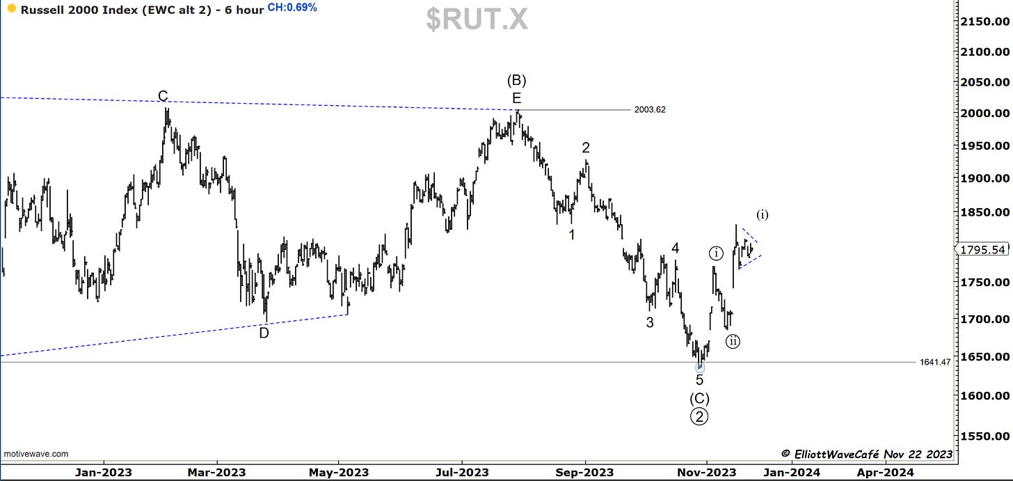 A 0.69% increase in the small caps, with a picture that is largely unchanged. Is that a small triangle before wave (i) actually completes?