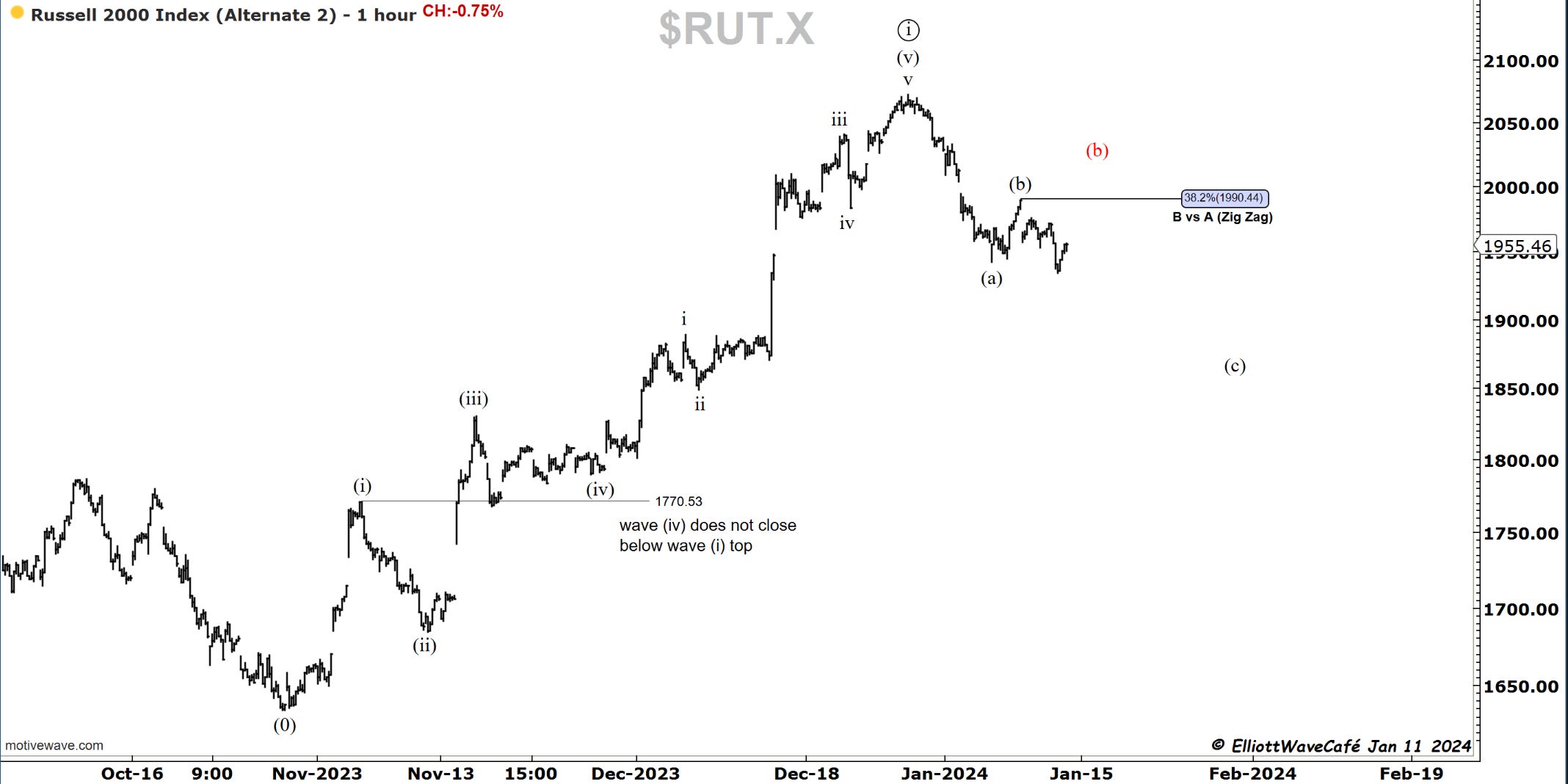 The three-wave rally in the Russell led to a new low. Small caps were very weak today. The decline is not fully impulsive, so if correct, there should be more to go until some level of proportion is reached between waves. If it manages to stage a rally, it will be in wave c of a flat in (b).