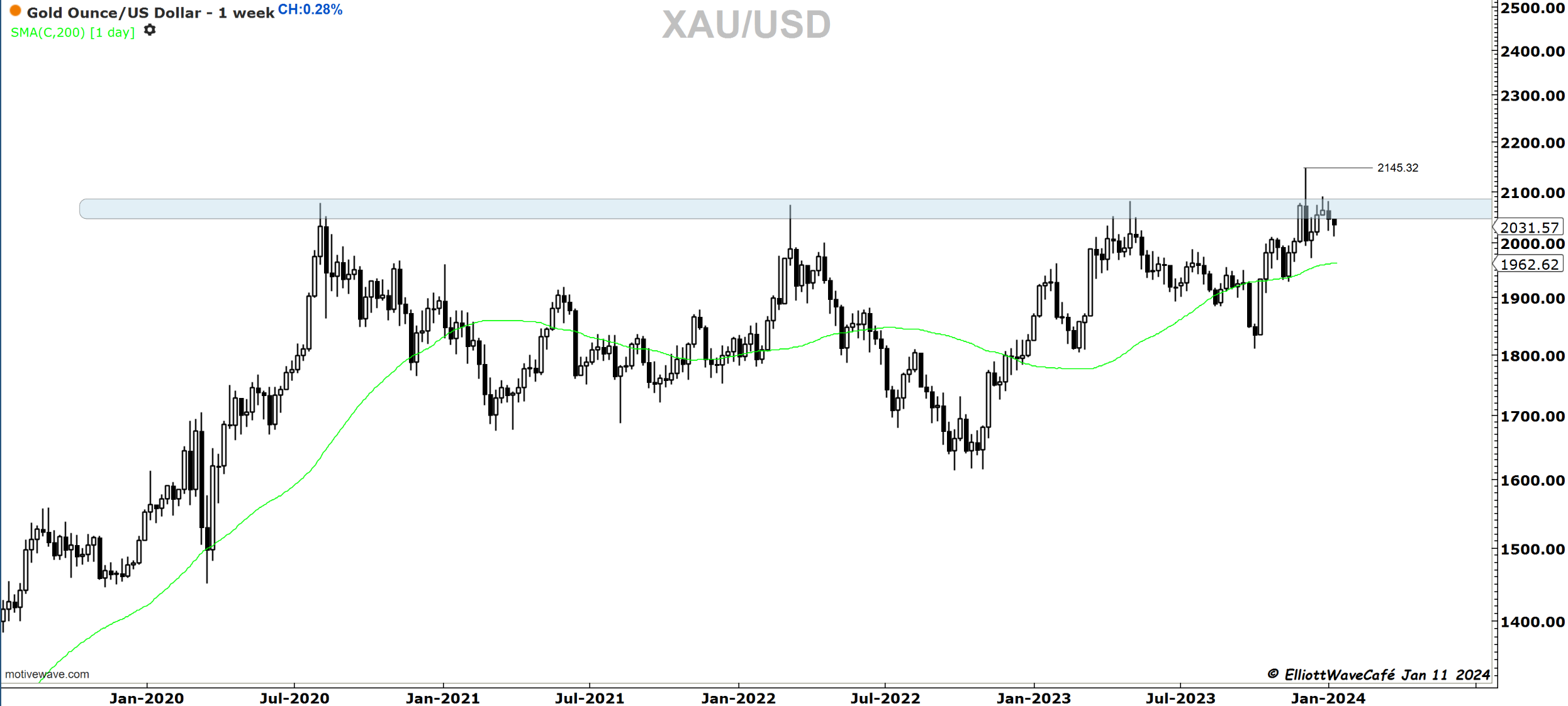 Price action in Gold is so muted. I need to refer to the weekly time frame to regain perspective. There's nothing to do but watch for now. Below 1960, bearish, above 2100 bullish.