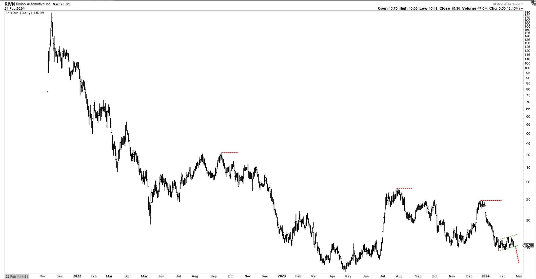 Chart of the Day RIVN 0.00%↑ - A story of an overvalued electrical company continues. It’s not that easy to build cars. Then you actually have to sell them. Trading $13 after hours and earnings.