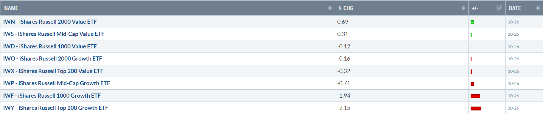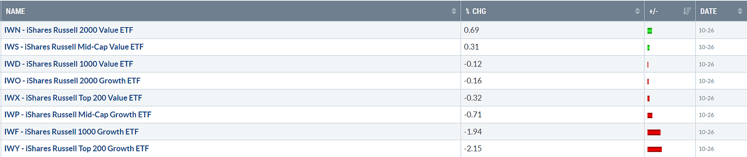 Here is the performance today, with the Top 200 growth names getting hit -2.15% while small caps and midcaps closed positive. These stocks have a much larger impact on the market behavior hence when they get hit we get heavier indices selloffs. Most of the other smaller stocks have been declining for a while and probably ran out of sellers at this juncture.