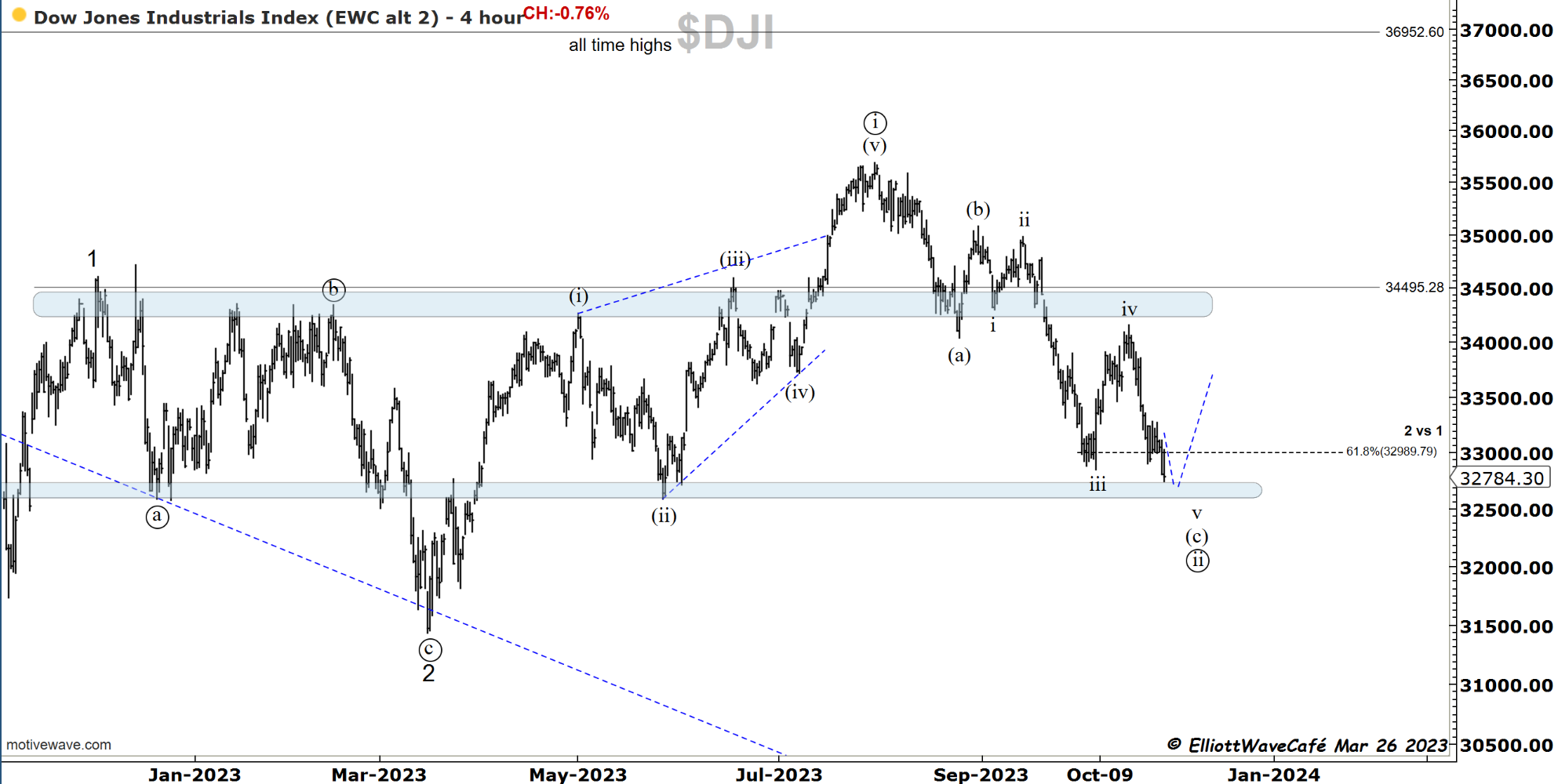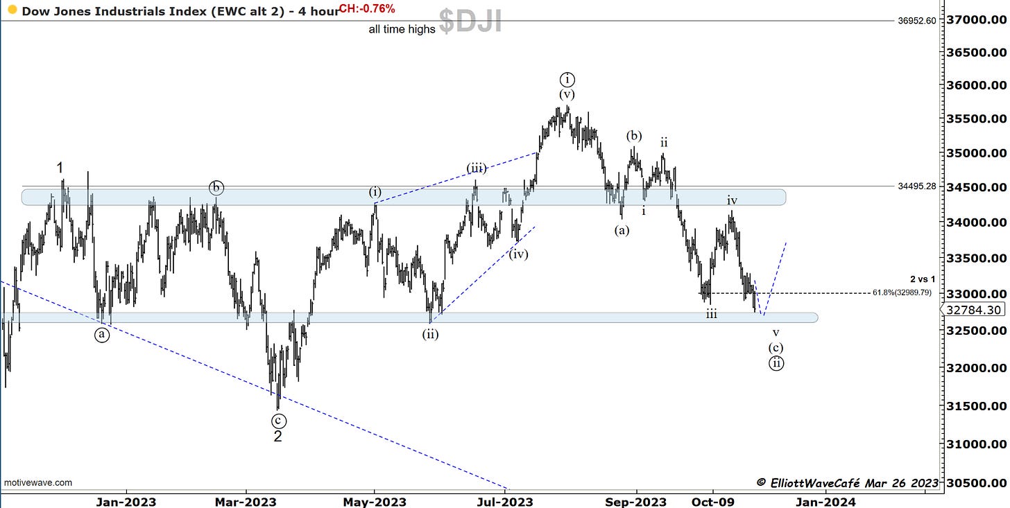 Dow gave us the drop we were looking for to try to complete the declining sequence. Right into that band of support. Let’s see if the next step is higher, but I would want to see it above 33600 to secure the low.