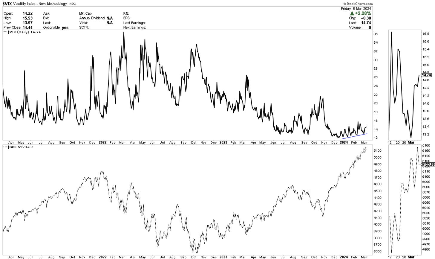 On the chart, you can see that volatility has been creeping higher week after week since the start of the year. I would watch 16 here as the line in the sand for risk building.