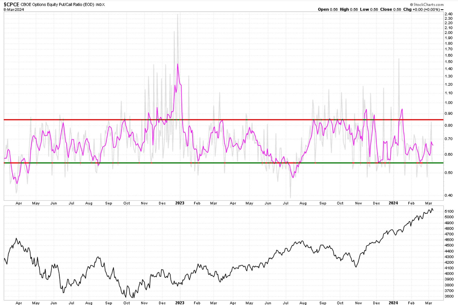 There are no significant extremes in the Put/Call ratio. Notice a slight increase in put buying. Nothing worth noting signal wise here.