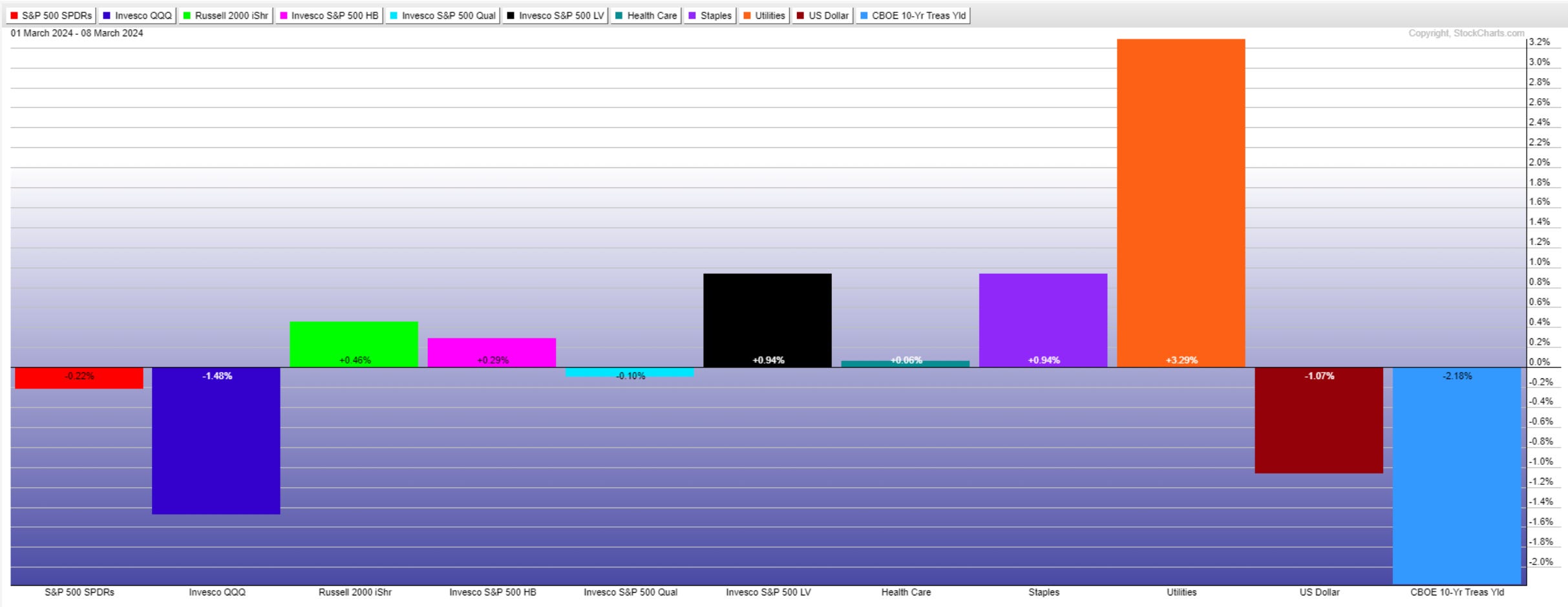 When Utilities and Staples perform well along with low volatility etf’s, you can sense the defense posture building up.